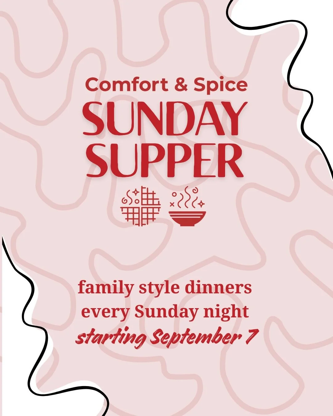Comfort & Spice Sunday Supper Sunday, September 7, 2025 4:30 PM 7:00 PM Google Calendar ICS Click here for tickets!